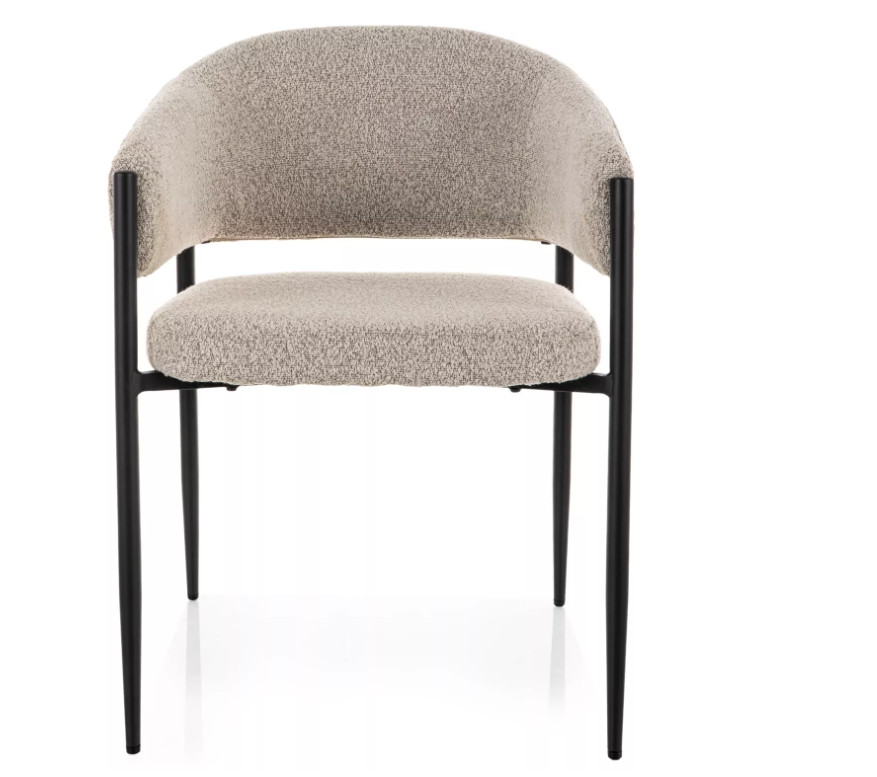 Ergonomikusan formázott háttámlája jól alátámasztja a hátat, míg a finoman ívelt karfák kényelmes tartást adnak, anélkül hogy nehézkessé tennék az összképet. A stabil, matt fekete fém lábszerkezet modern karaktert kölcsönöz, és megbízható tartást biztosít mindennapi használat mellett.