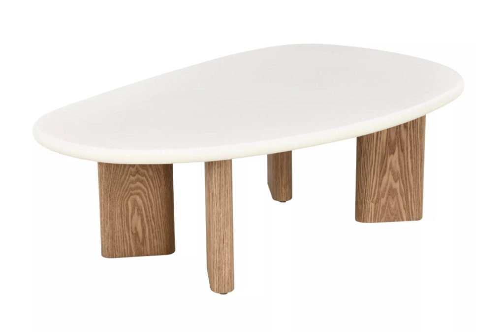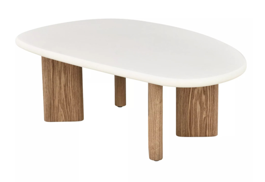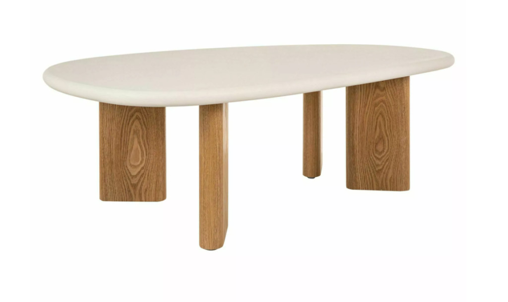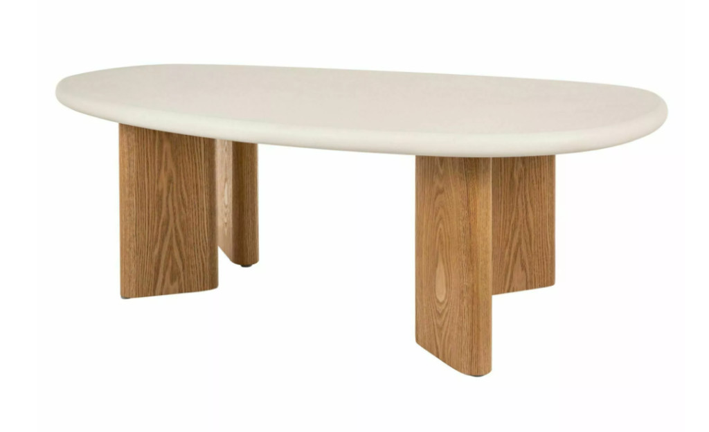 Modern megjelenésű dohányzóasztal, amely a minimalista formavilágot és a kortárs anyaghasználatot ötvözi. A mikrocement hatású asztallap (MDF + mikrocement) letisztult, kő jellegű felületet ad.
