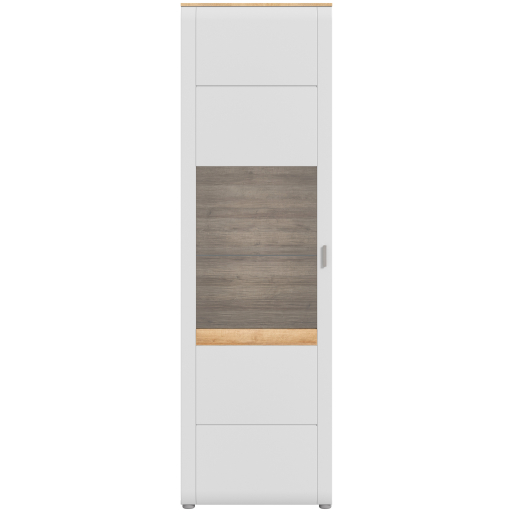 Elegáns, karcsú kialakítás minimalista vonalakkal és sima, visszafogott felülettel, modern esztétikával. Átlátszó üvegajtók a tálalóedények vagy dekorációs tárgyak elegáns bemutatásához, valamint zárt rekeszek extra tárolóhellyel a rendezett elpakoláshoz. Tökéletes nappalikba és étkezőkbe, mint stílusos bútor edények, poharak és dísztárgyak tárolására és kiállítására.