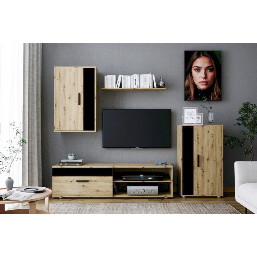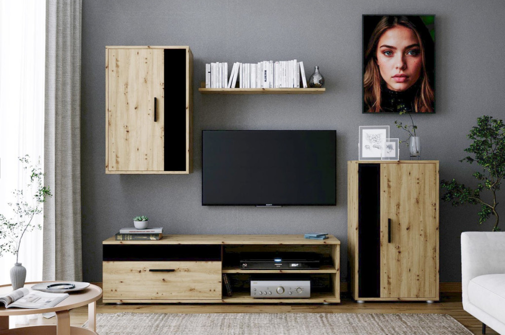 A Benson nappali bútorcsalád a kézműves tölgy természetes, otthonos hangulatát ötvözi a fekete elemek modern, városi stílusával. Ez az elegáns kontraszt olyan karaktert ad a helyiségnek, amely egyszerre meghitt és trendi – tökéletes választás modern lakásokba vagy stílusos nappalikba.
