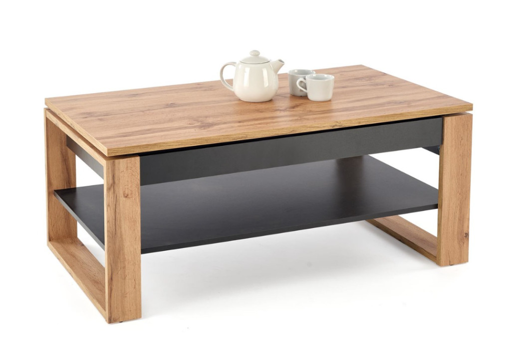 Betty emelőlapos dohányzóasztal kézműves tölgy/fekete