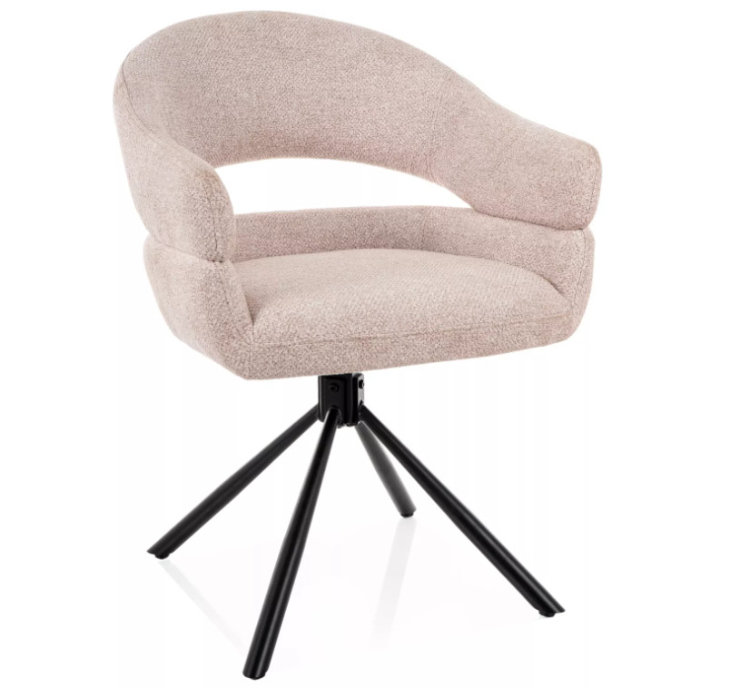 Az ívelt háttámla és az integrált karfa kényelmes, ergonomikus ülést biztosít, így hosszabb étkezések vagy beszélgetések során is komfortos marad. Kompakt, kb. 58 cm széles kialakítása miatt jól illeszkedik különböző méretű étkezőasztalokhoz.