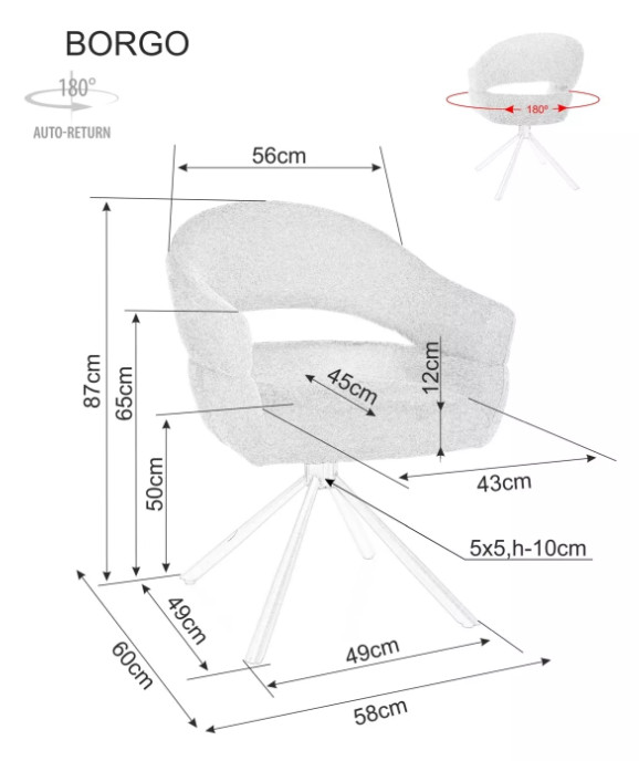 • Mérete: 87 x 50 x 45 x 58 cm ( magasság x ülésmagasság x ülésmélység x szélesség)