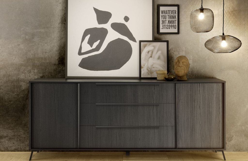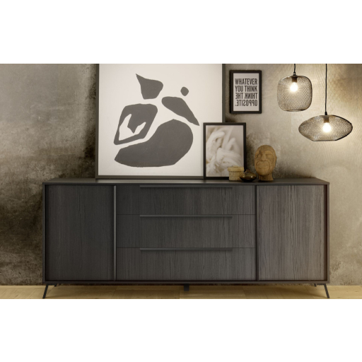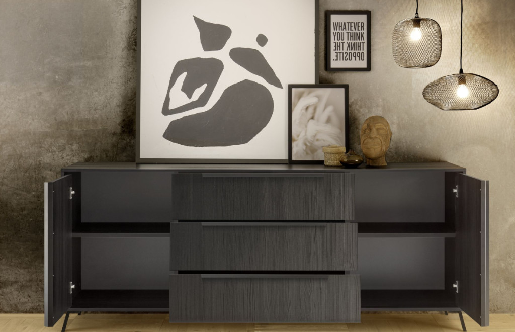 A City modern komód két ajtóval és három fiókkal elegáns, mégis praktikus bútordarab, amely bármely helyiségben megállja a helyét.