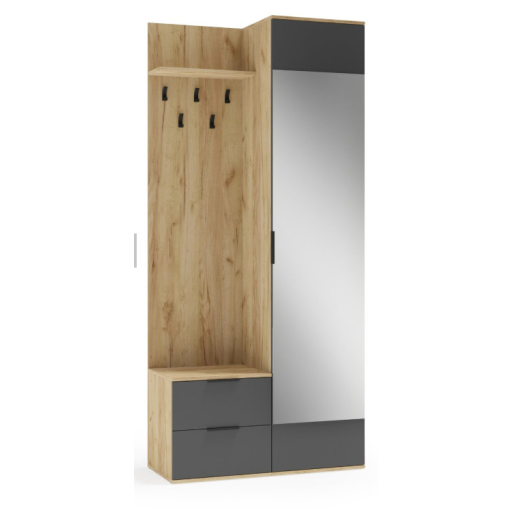 CORAL előszoba szekrény, tükörrel aranytölgy és antracit színben.