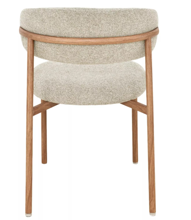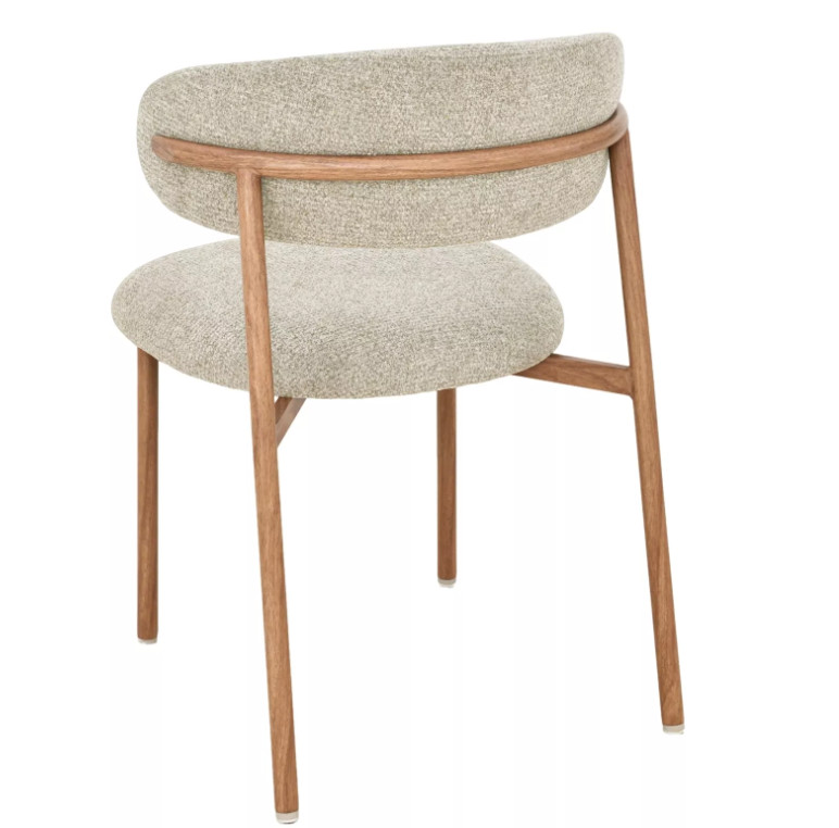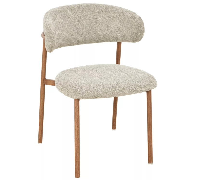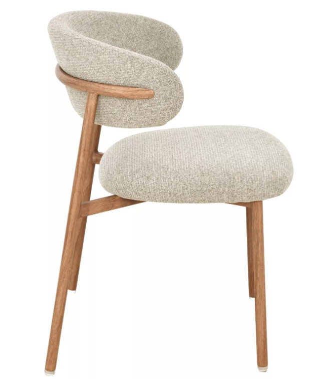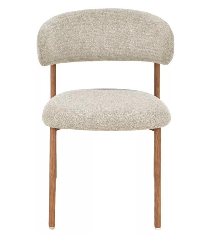 Letisztult formavilágú, modern étkezőszék, amely a kényelmet és a természetes hatású megjelenést ötvözi. Kárpitozott ülőfelülete és háttámlája kellemes tapintású szövetből készül, így mindennapi használatra is komfortos választás.