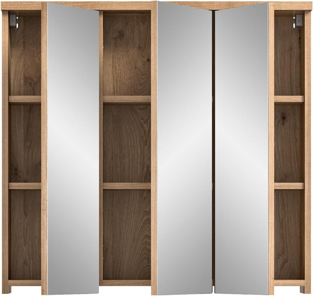 A tükrös szekrény modern és vonzó dizájnt kínál Nox tölgyfa utánzattal és elegáns tükörfronttal, amely modern esztétikát kölcsönöz a fürdőszobának, és jól illeszkedik a különböző belső stílusokba. A tükrös szekrény praktikus tárolóhelyet kínál kozmetikumok, gyógyszerek és egyéb személyes tárgyak tárolására a tükör előlapja mögött, miközben funkcionális fürdőszobai tükörként is funkcionál. Lakások, házak vagy szállodakomplexumok fürdőszobáiba alkalmas tükrös szekrény praktikus és esztétikus megoldást kínál a fürdőszoba rendszerezésére és használatára.