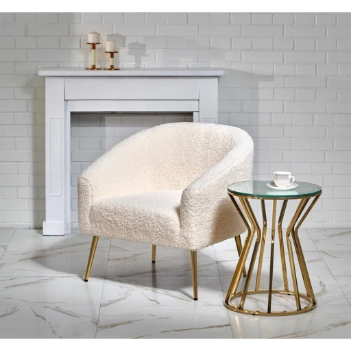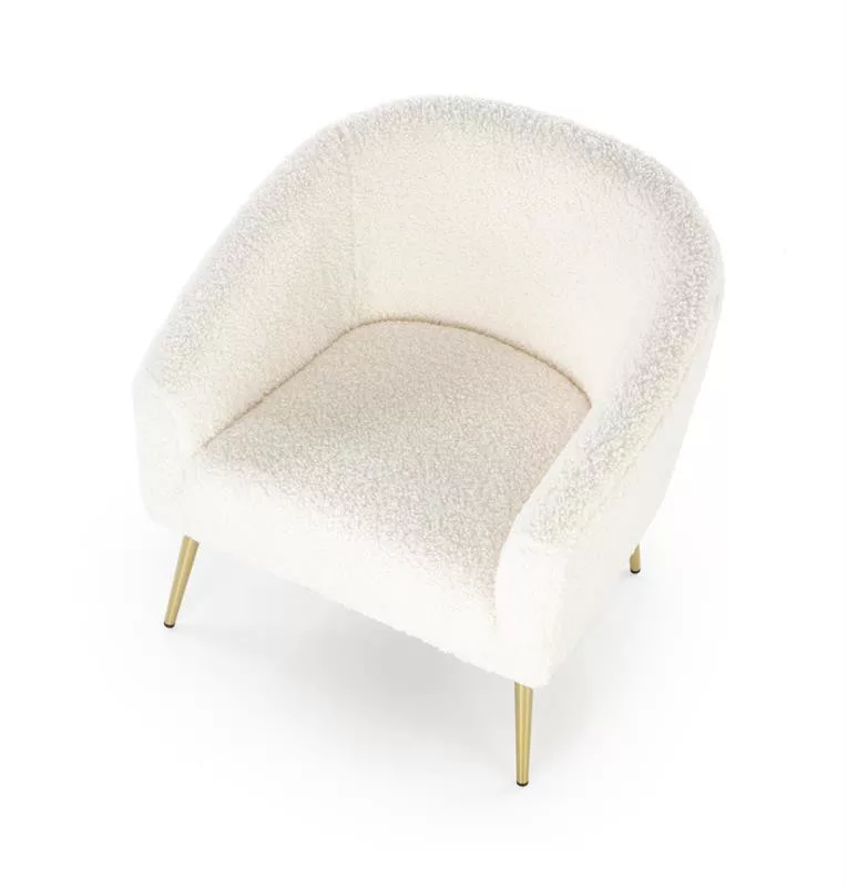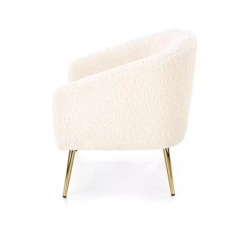 Grifon fotel krém színű bouclé kárpitozással és arany színű króm lábakkal