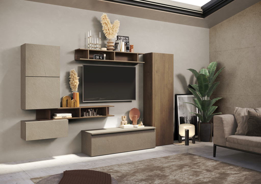 A szett tartalma: Vízszintes, fali szekrény, kicsi, 1 ajtóval felül/alul, korpusz/előlap: bézs laminált (argilla) 69x30x29cm (szé/mé/ma) 400410-31