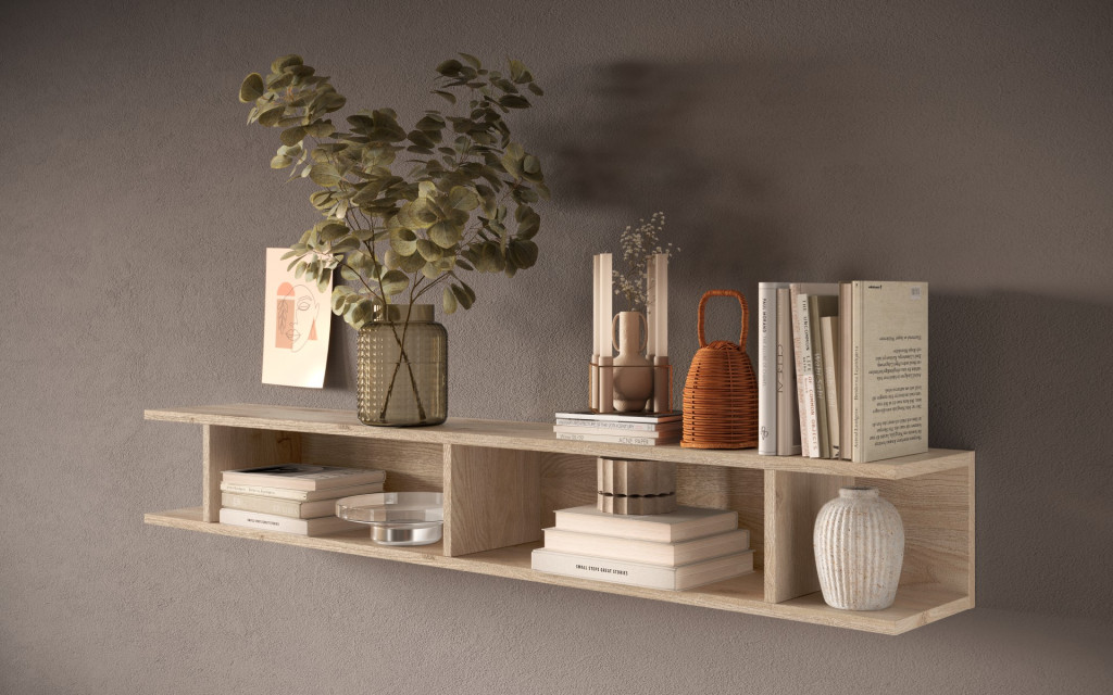Fali polc, vízszintes vagy függőleges, Cadiz tölgy laminált 138x21x19cm (szé/mé/ma) 402410-43