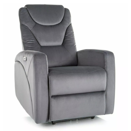 Elektromos dönthető fotel, szürke színű bársony szövettel.