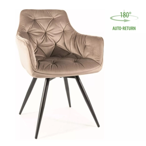 A MANGO Velvet szék a modern elegancia és a mindennapi kényelem tökéletes kombinációja. A puha, bársonyos bézs kárpit kifinomult megjelenést biztosít, míg a karcsú, fekete fémváz letisztult és stabil alapot nyújt.