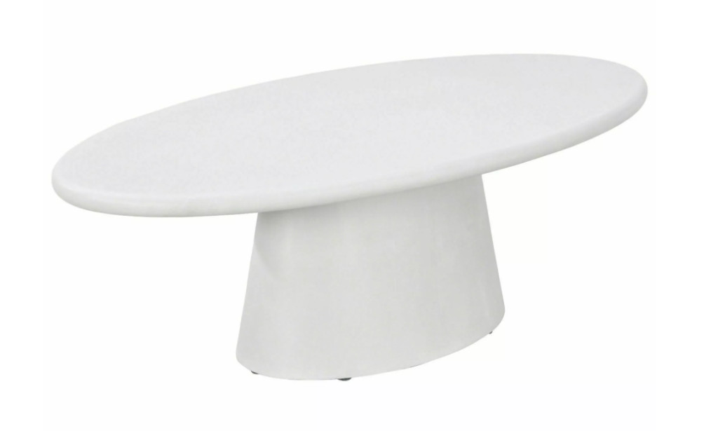Karakteres, ovális formájú dohányzóasztal, amely a modern, szoborszerű design irányát képviseli. Az asztallap és a teljes szerkezet MDF + mikrocement bevonattal készül, így egységes, kőhatású felületet ad, amely különösen jól illeszkedik minimalista enteriőrökbe.