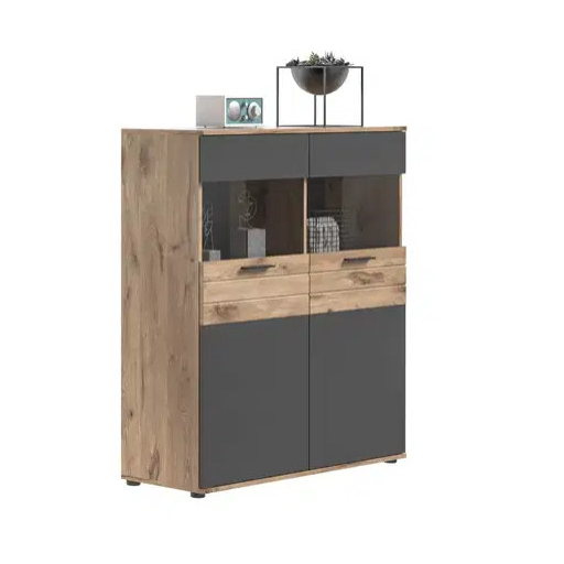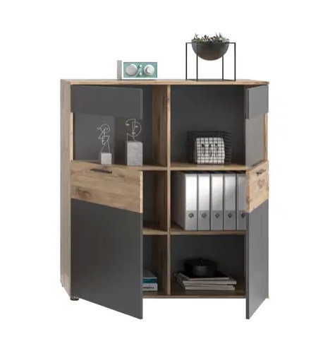 A Nox tölgyfa és bazaltszürke vitrin modern és vonzó dizájnt kínál, amely harmonikusan illeszkedik különféle helyiségekbe, mint például a dolgozószoba, fürdőszoba, előszoba, étkező, előszoba, háztartási helyiség, hobbiszoba, ifjúsági szoba, pince, gyerekszoba, konyha, hálószoba, műhely és nappali. A két szín kombinációja modern esztétikát kölcsönöz a bútordarabnak, míg a letisztult vonalak és a karcsú sziluett elegáns megjelenést biztosít. A vitrin elegendő tárolóhelyet és bemutatási felületet kínál különféle tárgyak, például edények, könyvek, dísztárgyak, ruhák, szerszámok, játékok és sok más számára. Üvegajtókkal rendelkezik, amelyek láthatóvá teszik a tartalmat, miközben védik a portól és a szennyeződéstől. A vitrin ideális tárgyak tárolására és bemutatására a ház vagy lakás különböző helyiségeiben. Stílusos bútordarabként szolgálhat a tárgyak rendszerezéséhez, ugyanakkor dekoratív elemként is hozzájárulhat a szoba kialakításához.