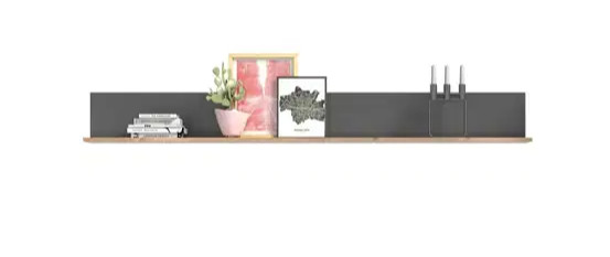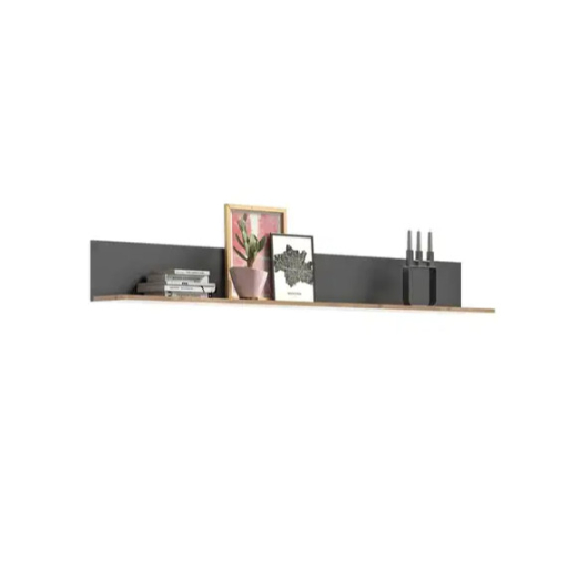 A Nox tölgyfa és bazaltszürke fali polc modern és sokoldalú dizájnt kínál, amely harmonikusan illeszkedik különféle helyiségekbe, például dolgozószobába, fürdőszobába, előszobába, étkezőbe, folyosóra, háztartási helyiségbe, hobbiszobába, ifjúsági szobába, pincébe, gyerekszobába, konyhába, hálószobába, műhelybe és nappaliba. A két szín kombinációja modern esztétikát kölcsönöz a fali polcnak, míg karcsú sziluettje és letisztult vonalai elegáns megjelenést biztosítanak. A fali polc praktikus és helytakarékos megoldást kínál könyvek, dísztárgyak, képkeretek, növények és egyebek tárolására és bemutatására. Falra szerelhető, így további tárolóhelyet hozhat létre anélkül, hogy értékes padlófelületet foglalna el. A fali polc ideális funkcionális és dekoratív elem a ház vagy lakás különböző helyiségeinek faldekorációjához. Használható könyvespolcként, dísztárgyak polcaként vagy praktikus tárolási megoldásként, és segít optimalizálni a szoba elrendezését.