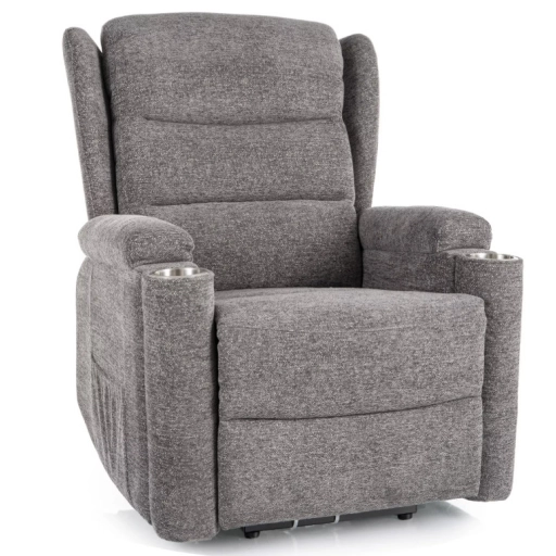 Elektromosan dönthető, függőlegesen állítható karosszék, Raven 13 szövetkárpittal, váz: fém, szín: szürke / fekete. Pohártartó, praktikus zseb a jobb oldalon, vezetékes távirányítóval.