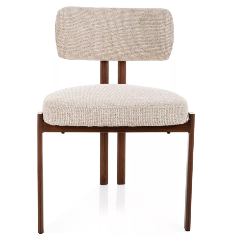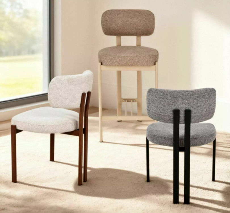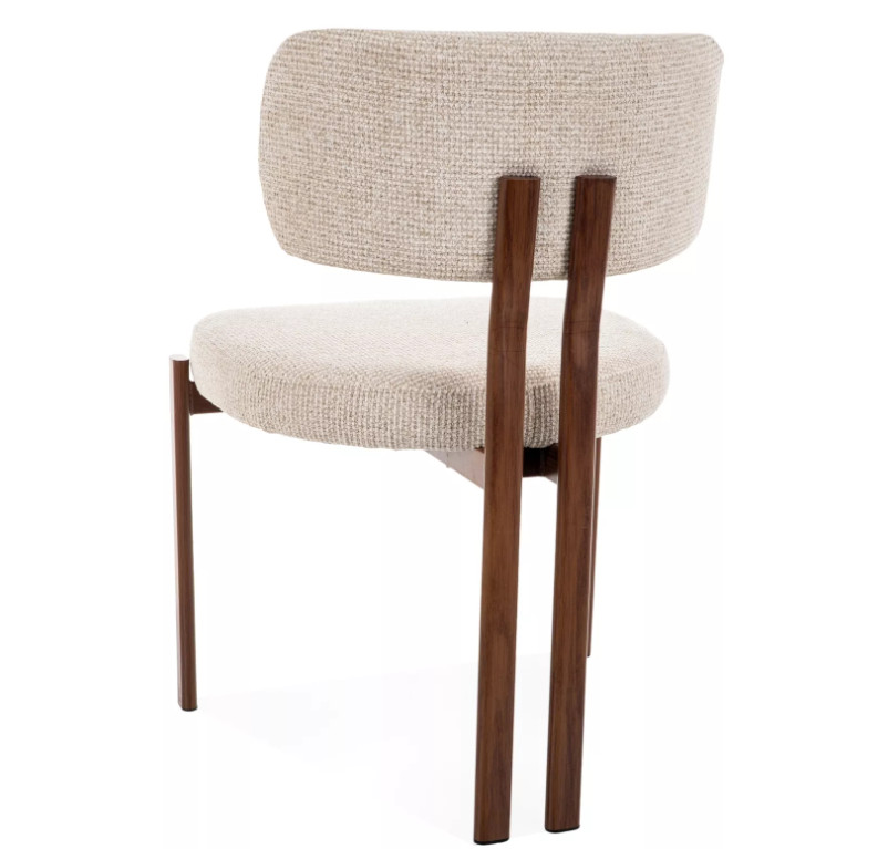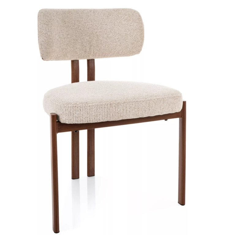 Modern, letisztult megjelenésű étkezőszék, amely jól illeszkedik nappali vagy étkező környezetbe. Szövet kárpitozású ülőfelülete kellemes tapintású, miközben a stabil fém váz hosszú távú használatra is megfelelő tartást biztosít.