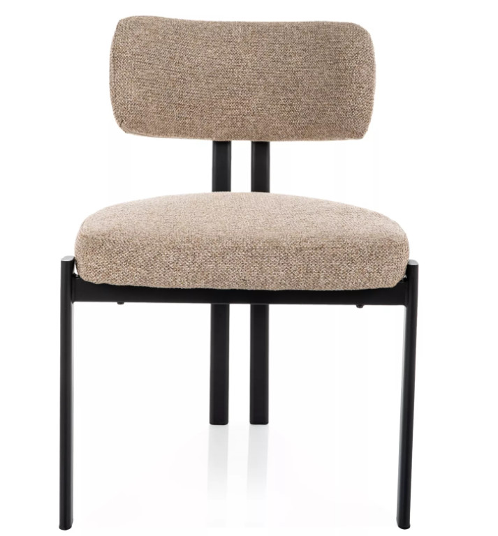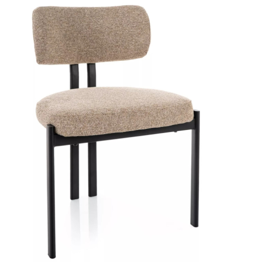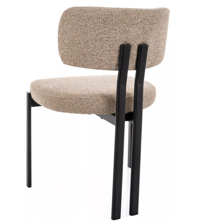 Modern, letisztult megjelenésű étkezőszék, amely jól illeszkedik nappali vagy étkező környezetbe. Szövet kárpitozású ülőfelülete kellemes tapintású, miközben a stabil fém váz hosszú távú használatra is megfelelő tartást biztosít.