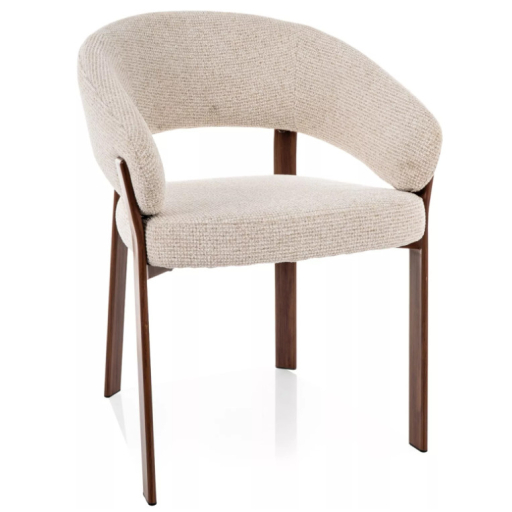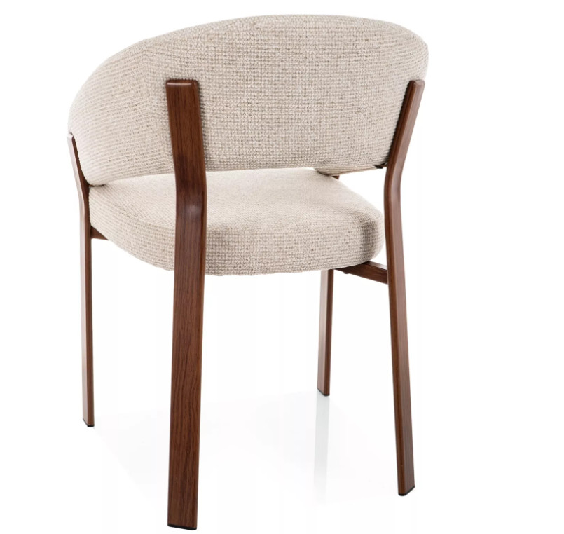 Az enyhén ívelt háttámla ergonomikus kialakítású, jól alátámasztja a hátat, így hosszabb étkezések vagy beszélgetések során is komfortos marad. A stabil lábszerkezet biztos tartást ad, miközben a szék vizuálisan könnyed és modern hatású.
