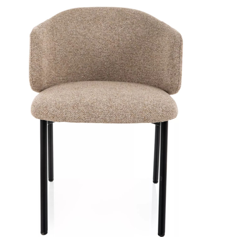 Modern, fotelszerű kialakítású étkezőszék, amely a kényelmet és a letisztult megjelenést ötvözi. Kárpitozott ülőfelülete kellemes tapintású szövetből készül, így mindennapi használatra is komfortos választás.