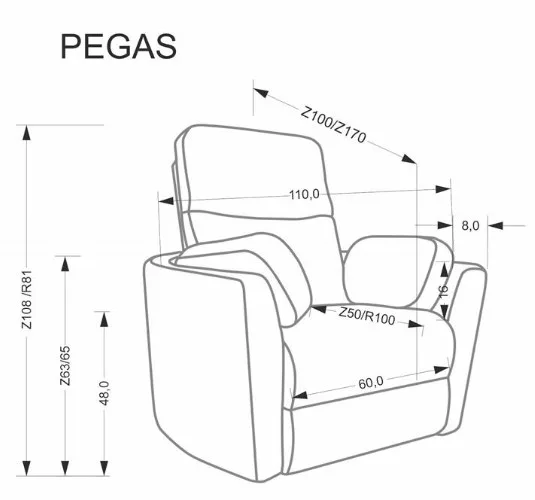 - Mérete: 110/100-170/108-81/45 cm ( szélesség x mélység x magasság x ülésmagasság )