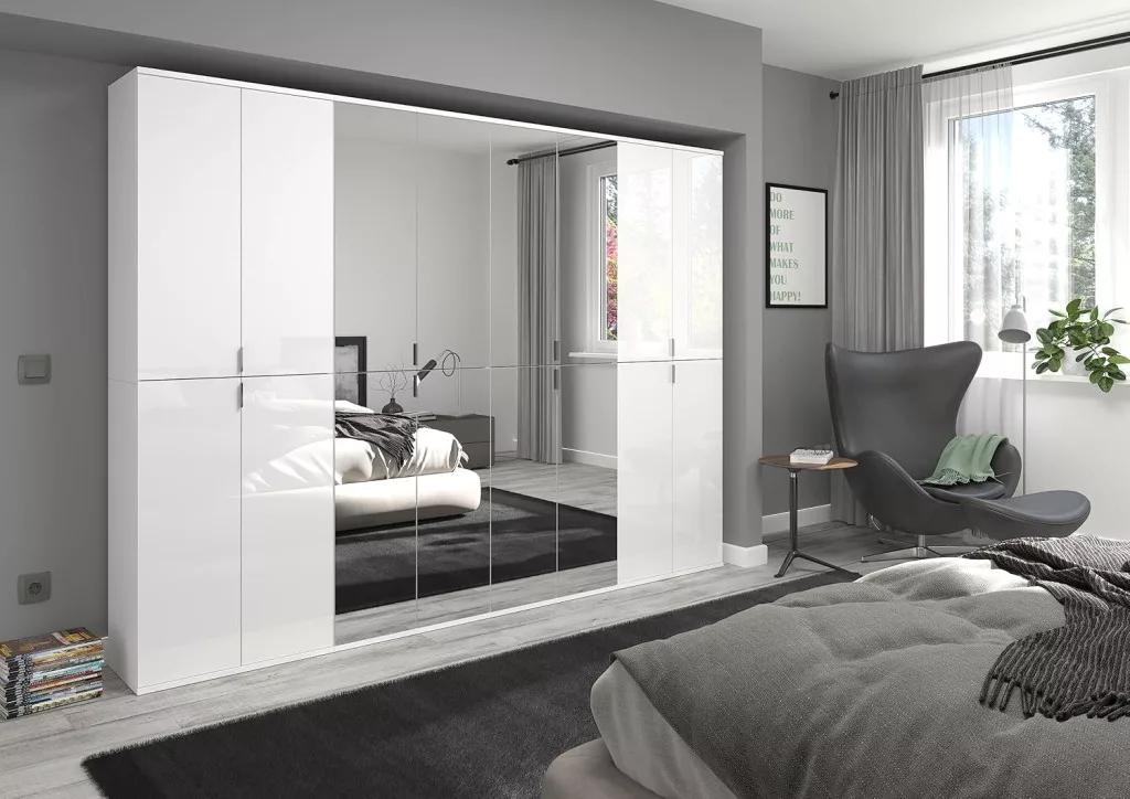 A fehér és magasfényű fehér színű gardróbszekrény-kombináció modern eleganciát sugároz, amit a fényes felület és a letisztult vonalak hangsúlyoznak. A magasfényű felület vonzó és modern megjelenést kölcsönöz a bútordarabnak, míg a fehérutánzat friss és világos összhatást biztosít. Ez az egyszerű, mégis stílusos dizájn jól illik különböző belső stílusokhoz, és világos, szellős hangulatot kölcsönöz a helyiségnek. Különböző tárolási lehetőségeivel a gardrób kombináció praktikus megoldást kínál ruhák, cipők és egyéb személyes tárgyak rendszerezésére. A ruhaakasztó rúd és a polcok kombinációja elegendő helyet kínál a sokoldalú felhasználáshoz. A magasfényű felület könnyen tisztítható és sima felületet kölcsönöz a bútordarabnak. A gardrób kombináció ideális különféle helyiségekbe, például fürdőszobába, gyerekszobába, hálószobába vagy akár egy lakásba. Praktikus és dekoratív bútordarabként is szolgálhat, amely rendet teremt, ugyanakkor vizuálisan is növeli a szobát.