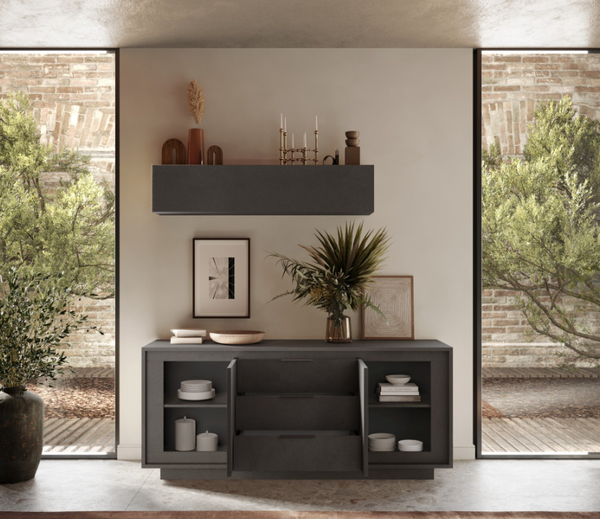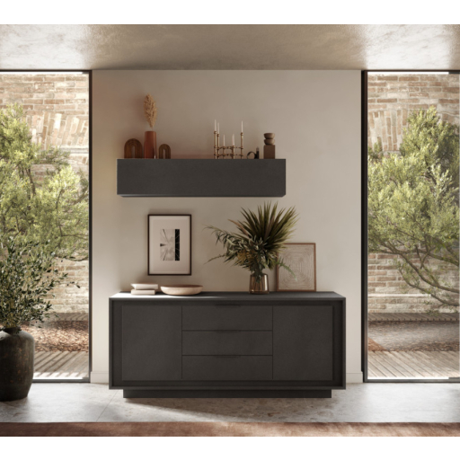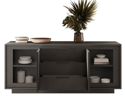 SKY 2.0 komód 2 ajtóval és 3 fiókkal, sötét láva matt lakkozott vázzal és laminált előlapokkal