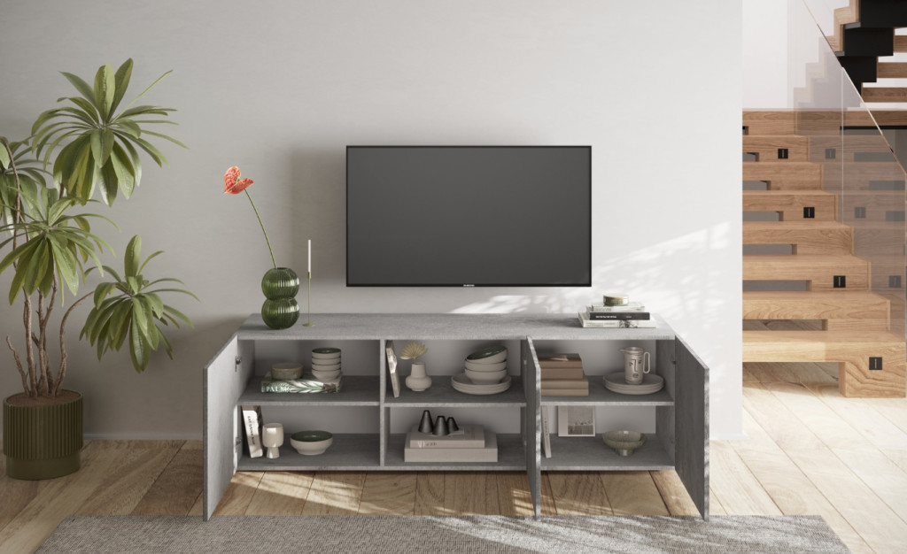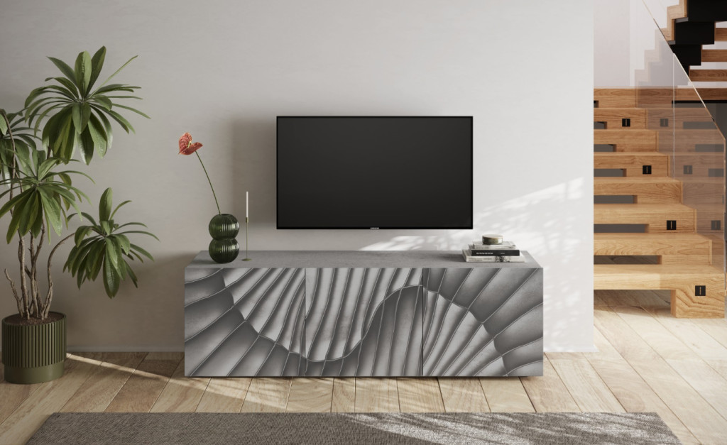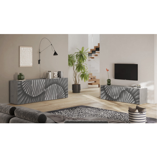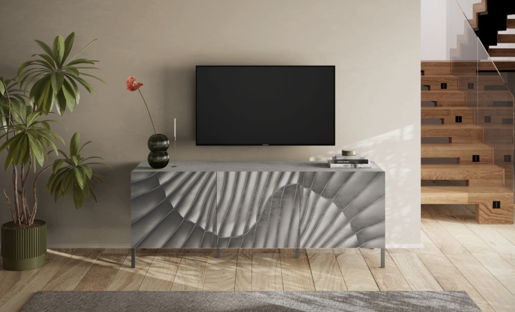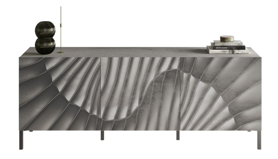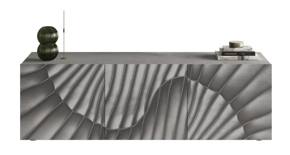 SNAKE háromajtós komód, betonhatású testet és szürke, díszített mintázatú előlapokkal