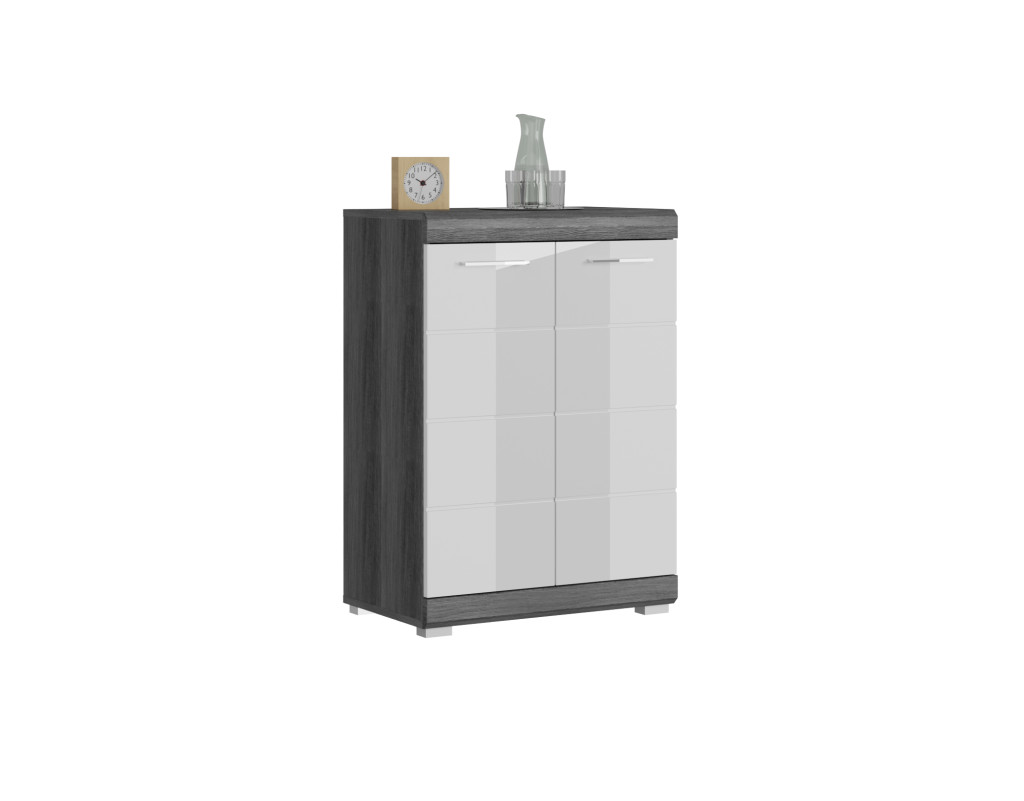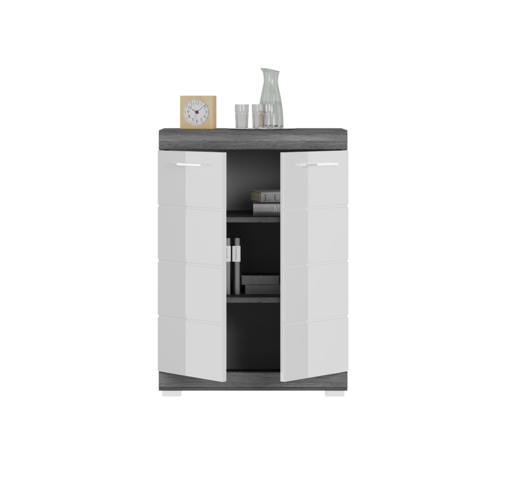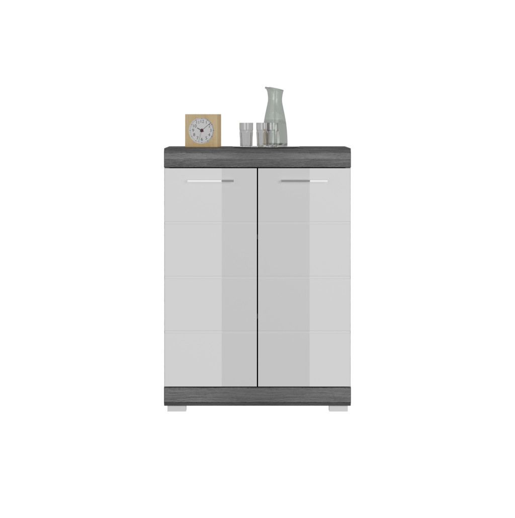 A Scout komód egy helytakarékos tárolási megoldás modern felfogásban – ideális előszobába, nappaliba vagy hálószobába. Kompakt méreteivel (60 × 85 × 37 cm) a komód harmonikusan illeszkedik a legkülönfélébb életterekbe. A két fehér, magasfényű ajtó mögött egy fix, strukturált polc és egy állítható magasságú polc található – ideális mindennapi tárgyak, textíliák vagy dokumentumok rendszerezésére. A letisztult vonalak és a füstös ezüst test hangsúlyozzák a modern dizájnt, és számos belső stílushoz illeszkednek. A melamin bevonatú, FSC® minősítésű fából készült komód tartósságával és könnyű kezelhetőségével lenyűgöző. Szétszerelt állapotban, illusztrált összeszerelési útmutatóval és a hozzá illő rögzítőelemekkel szállítjuk. Stílusos kiegészítője a rendezett otthonnak.