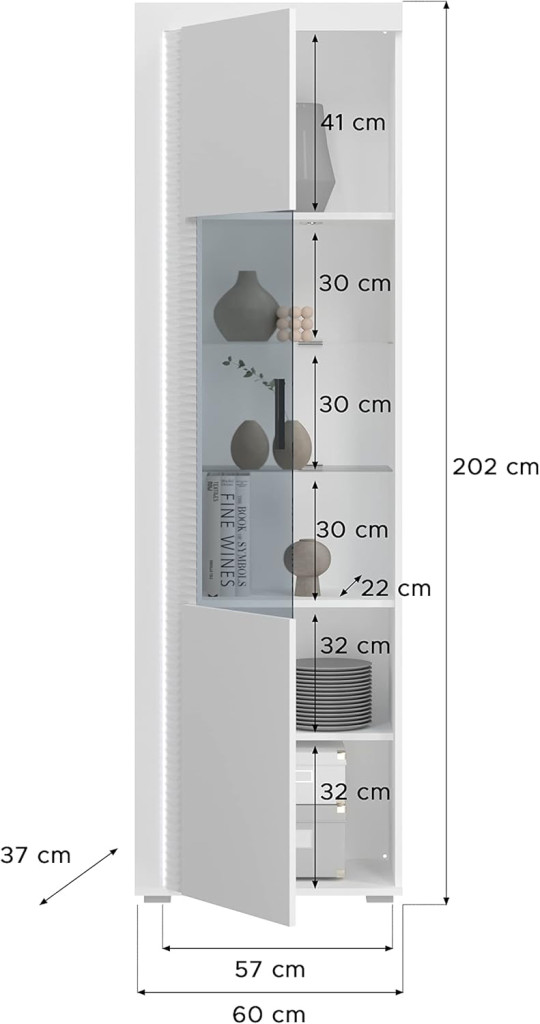 A fehér és magasfényű fehér vitrin modern és elegáns dizájnnal rendelkezik, amely a fényes felületek és a letisztult vonalak kombinációjával kortárs esztétikát teremt a nappaliban, az étkezőben vagy a bejáratnál, ugyanakkor egyszerű és vonzó is. A nagyméretű üvegvitrinekkel és az ajtók mögötti további tárolóhellyel a vitrin funkcionális megoldást kínál dísztárgyak, étkészletek, poharak és egyéb mindennapi használati tárgyak tárolására és bemutatására, javítva a tér rendezettségét és hatékonyságát. A kiváló minőségű anyagokból készült vitrin garantálja a magas minőséget és a tartósságot. A fehér, magasfényű, mélyhúzott felületű replika könnyen kezelhető, és nedves ruhával könnyedén tisztítható, hogy megőrizze vonzó megjelenését.