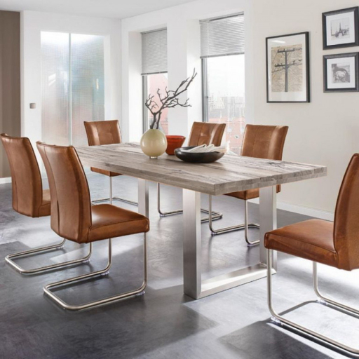 - CASTELLO étkezőasztal, Vad tölgy 240 x 100 cm-es, keret szál csiszolt rozsdamentes acél CAS240EW