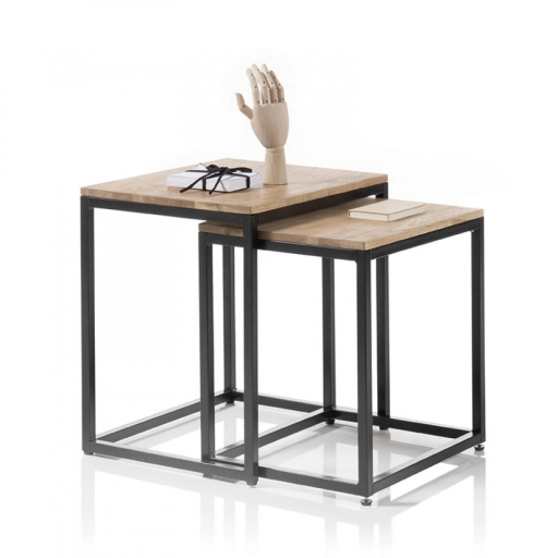 SAKURA dohányzó asztal Olajozott tömör tölgy - fekete fém keret - szett - 50x40cm és 45x37cm, házhoz szállítás és összeszerelés Budapesten és környékén.