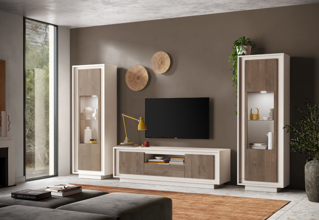 A bútorcsalád minden darabja — legyen az vitrin, komód vagy szekrény — a funkcionalitás és az esztétikum tökéletes összhangját kínálja.